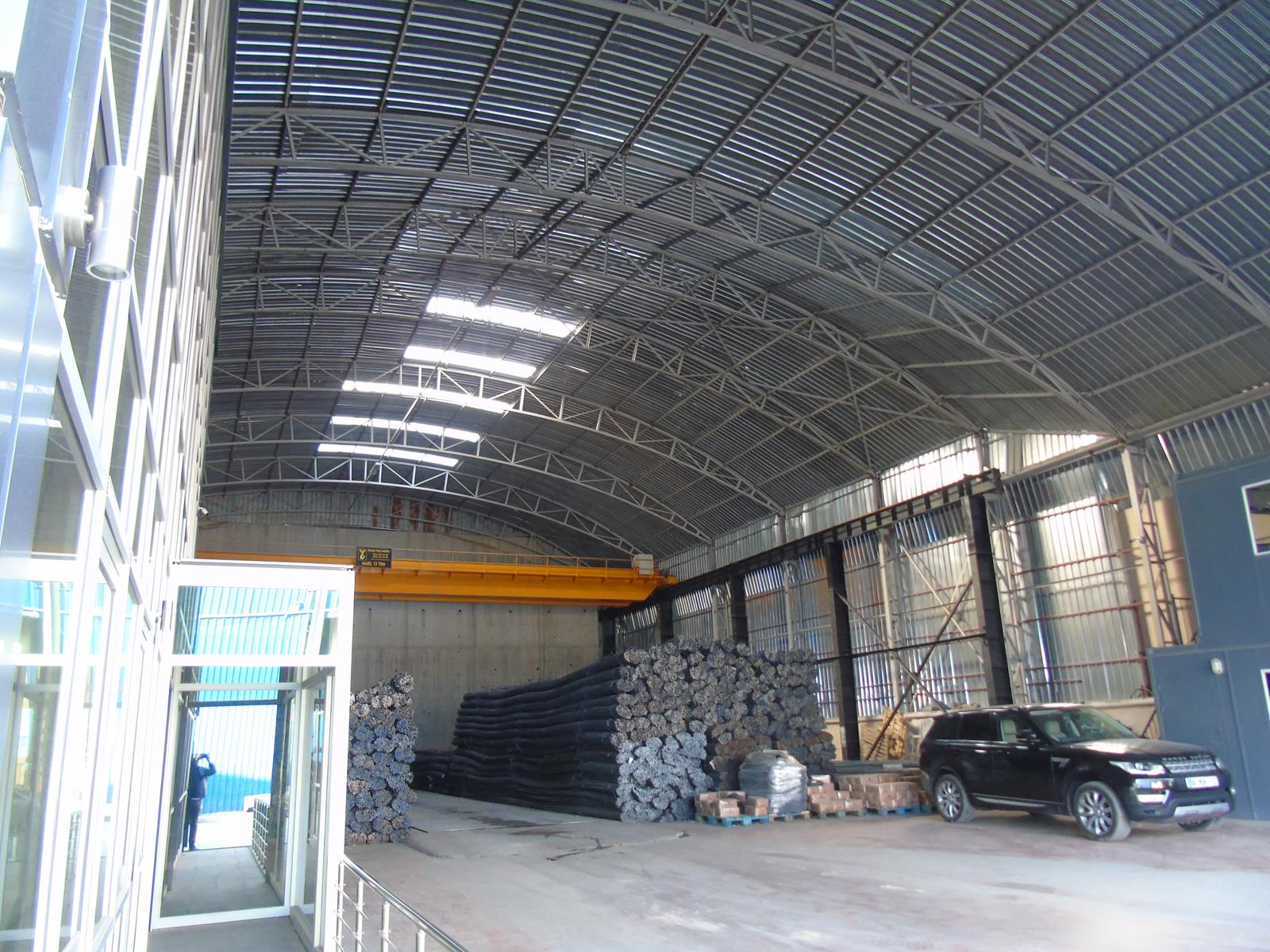 Ankara Yenimahalle Macun bölgesinde yer alan yapımız betonarme ofis ve idari bölümler ile çelik saha kapaması ve çatı sistemi ile imal edilmiş olup zemin dayanımı yüksek olması için radye temel ve benzer saha alanı sistemi ile oluşturulmuştur cm2 ye düşen yük dayanımı 1500kg üzerindedir. Depolama ve satış bazlı ticari alan olarak kullanıma uygundur. Tavan yüksekliği 9,50m olarak imal edilmiş, kolonlar vinç kurulumuna uygun olarak uygulanmıştır ve ekstradan çelik ayaklı vinç montajı yapılmıştır. 1000 m2 arsa üzerine kurulu yapıda toplamda 1550 m2 imalat yer almaktadır. Proje 2018 yılında başlamış ve 120 gün içerisinde tamamlanmıştır.